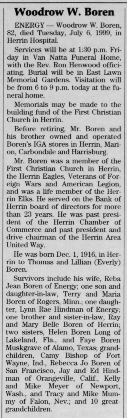 | Father* | Thomas Boren b. 25 Jan 1882, d. 25 Nov 1958 |