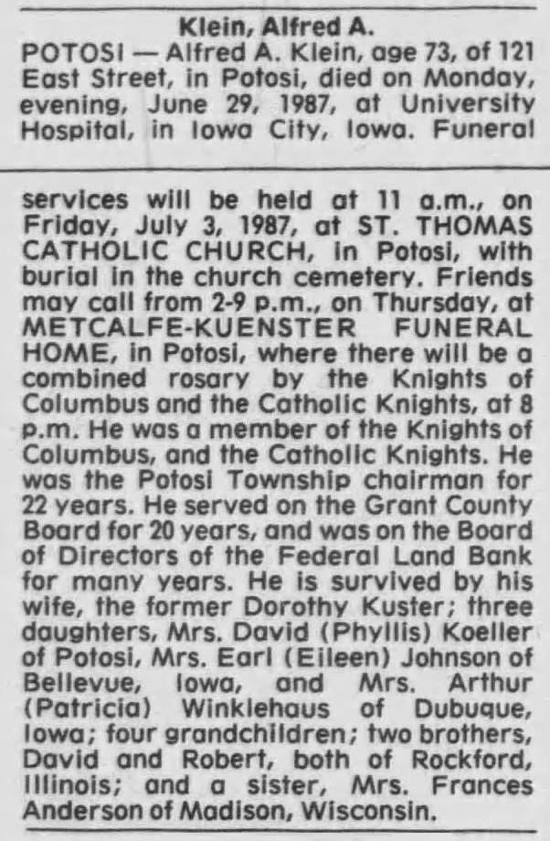 - Henry Joseph Klein+ b. 30 Aug 1880, d. 8 Oct 1960