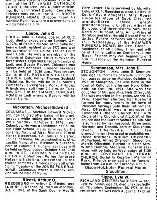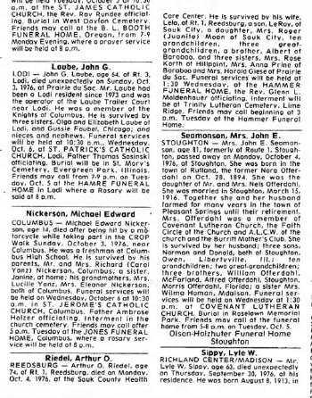 - [S250] U.S. Federal Census 1930 U.S. Federal Census, by Ancestry.com, Year: 1930; Census Place: Washington, Sauk, Wisconsin; Roll: 2609; Page: 5B; Enumeration District: 0038; Image: 503.0; FHL microfilm: 2342343.