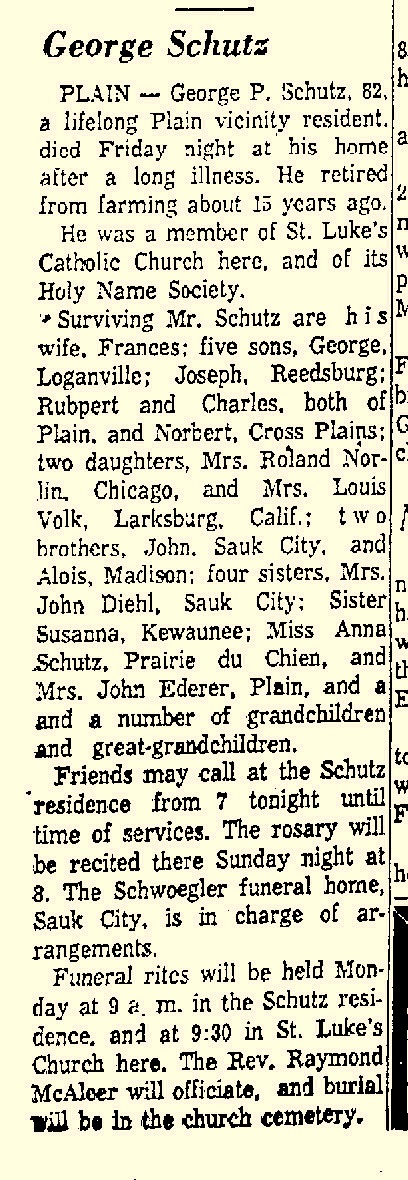 - Joseph M. Schutz b. 26 Jul 1906, d. 29 Jan 1993