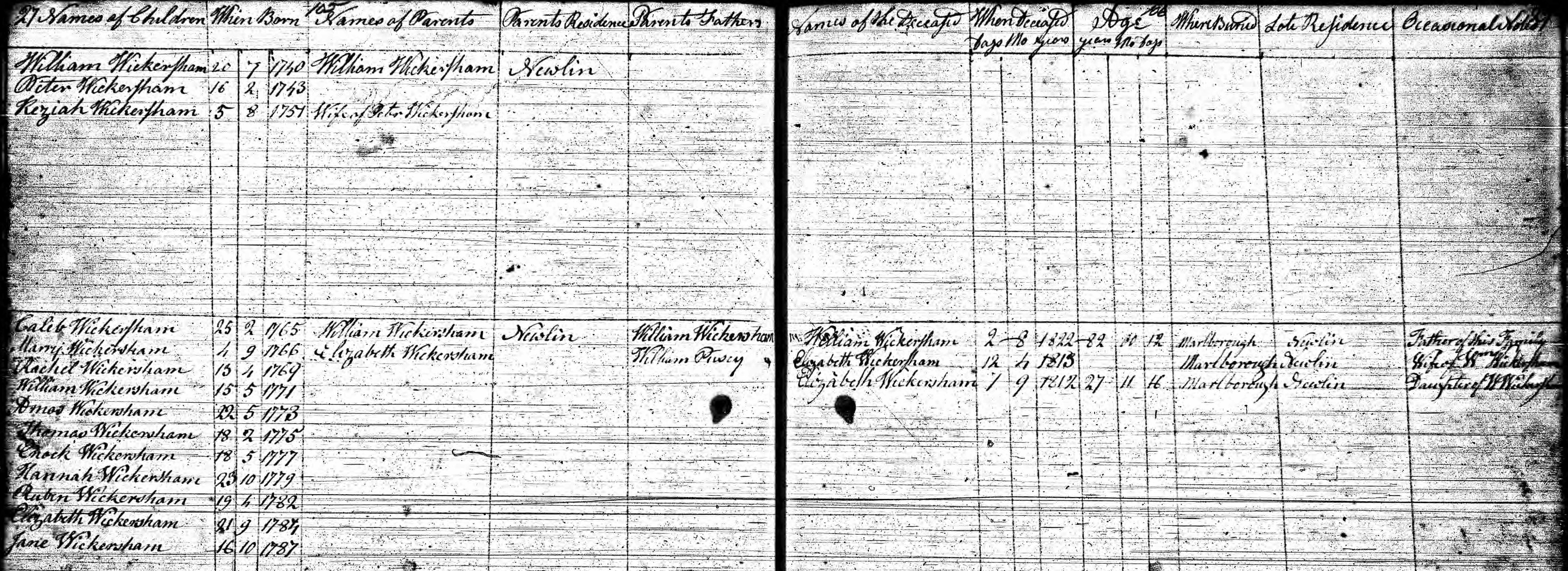 - Elizabeth Wickersham b. 21 Nov 1784, d. 7 Nov 1812
