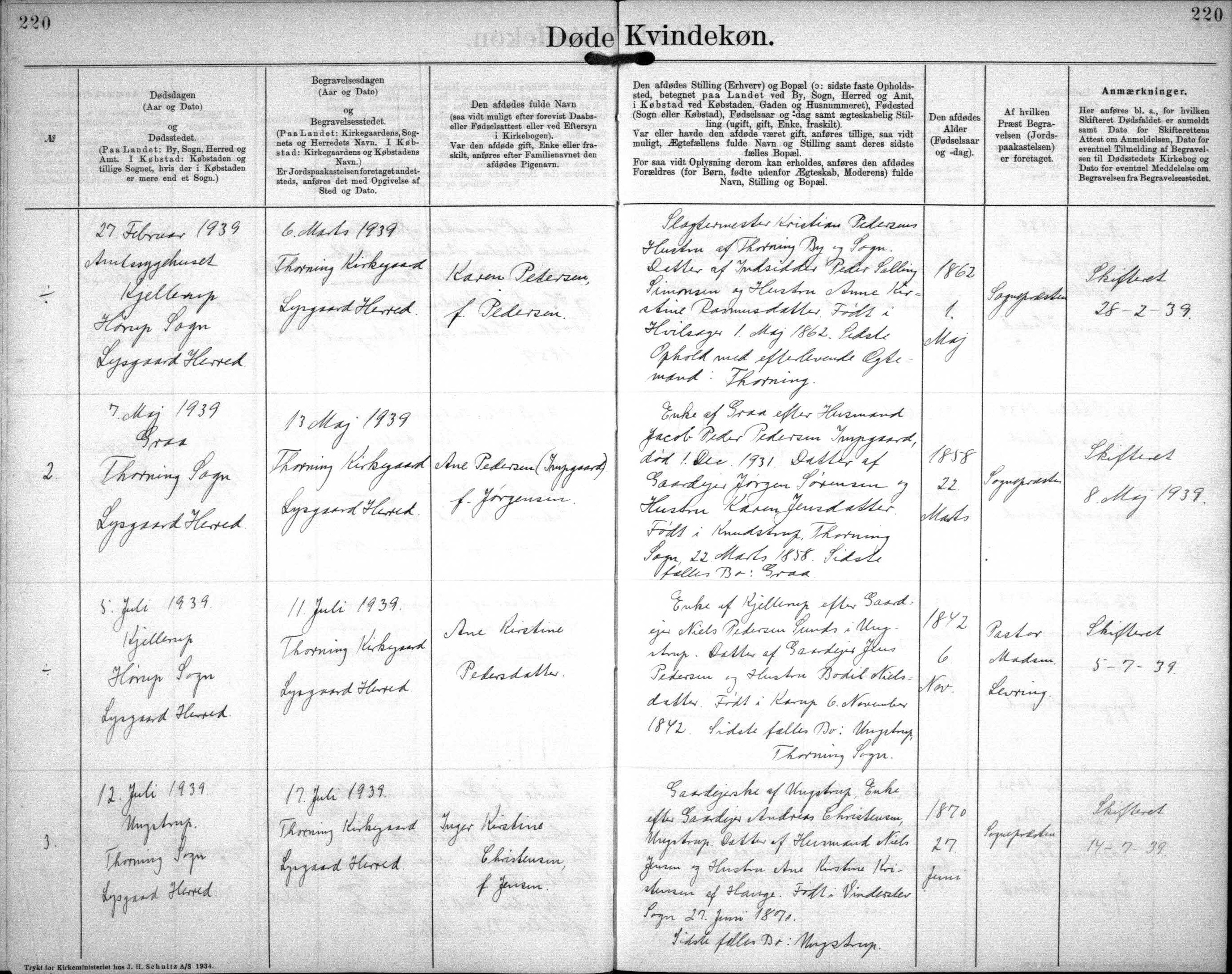- [S383] The Danish National Archives; Church Records, Ane Kirstine Pedersdatter death record - 05 July 1939 - Thorning, Lysgaard, Viborg, Denmark.