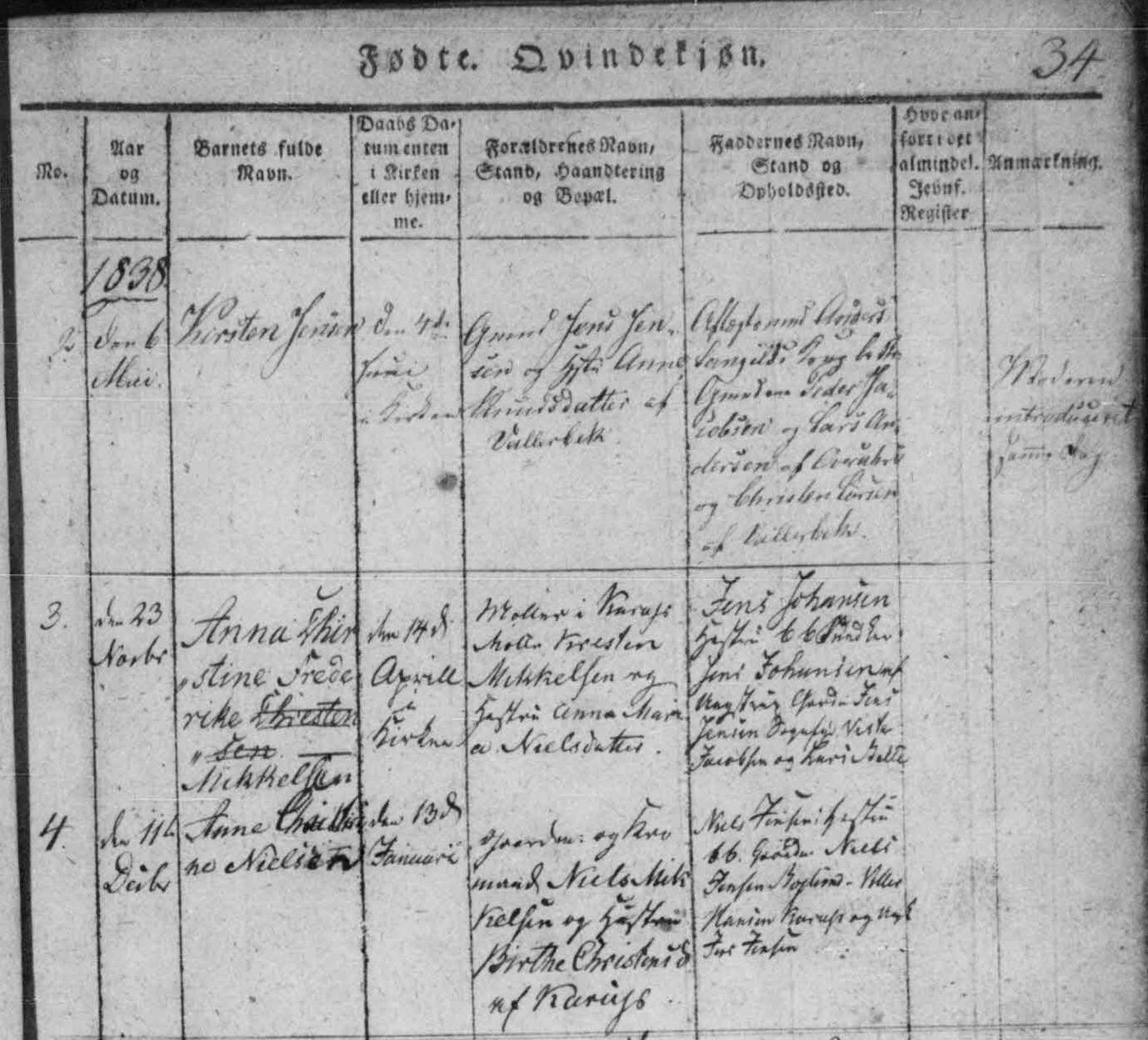 - [S383] The Danish National Archives; Church Records, Anne Christine Nielsen (Nielsdatter) birth record, Page 34 Image 20, Karup sogn (Viborg amt) Kontraministerialbog (1814 - 2002) Denmark.