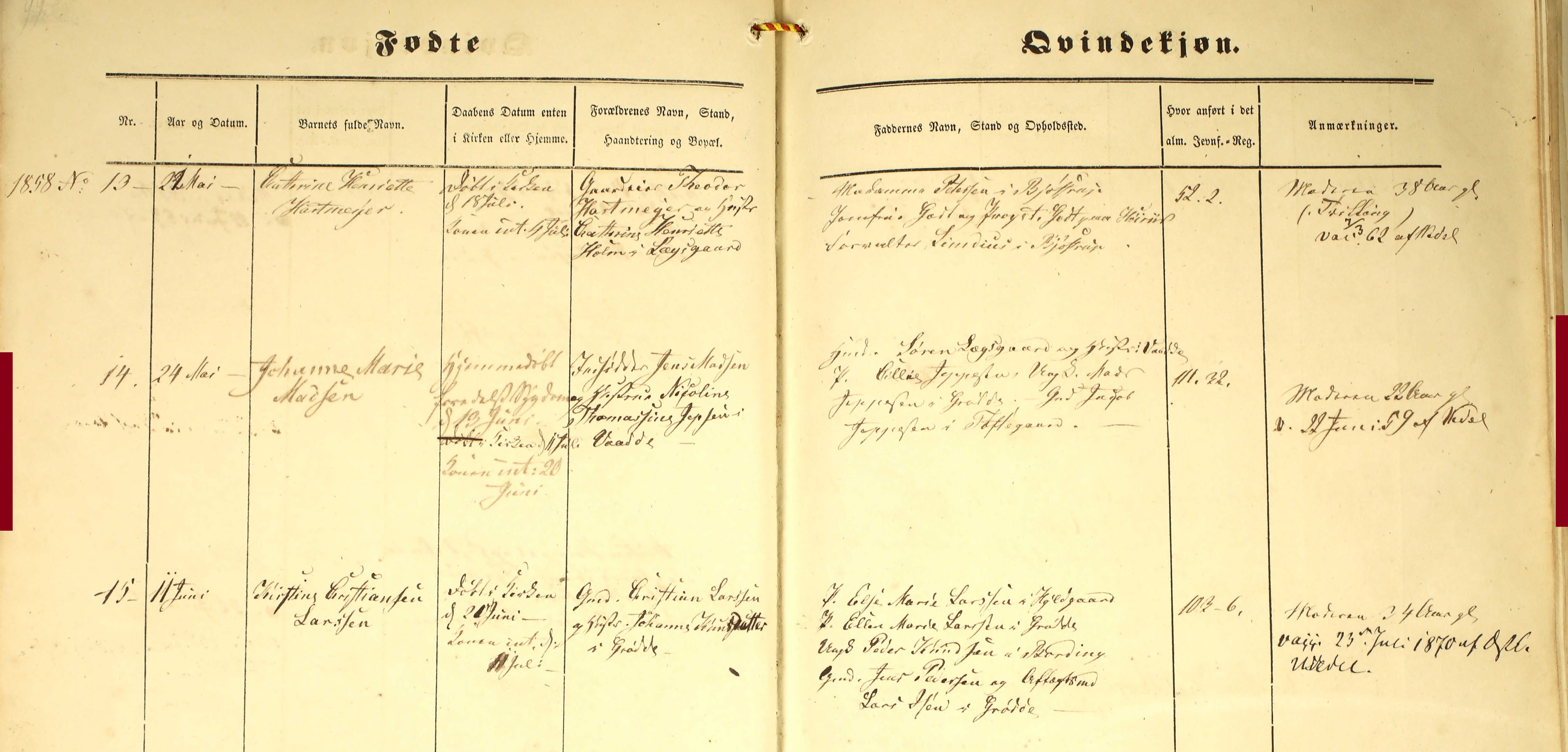 - [S383] The Danish National Archives; Church Records, Ane Kristine Pedersen birth record, Page 40 Image 23, Karup sogn (Viborg amt) Kontraministerialbog (1814 - 2002) Denmark.