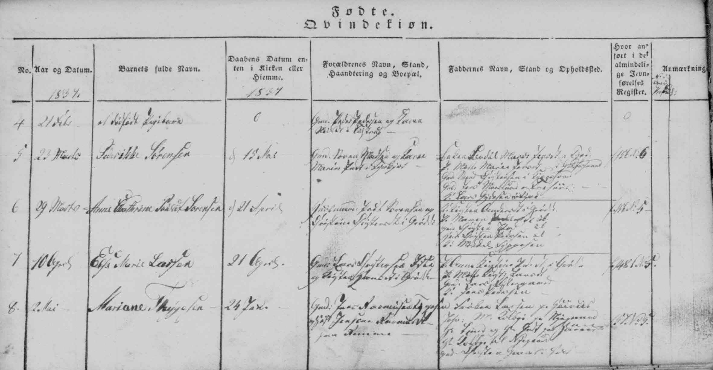 - [S383] The Danish National Archives; Church Records, Ane Johanne Nielsdatter birth record, Page 6 Image 7, Kontraministerialbog (1814 - 2002) Denmark.