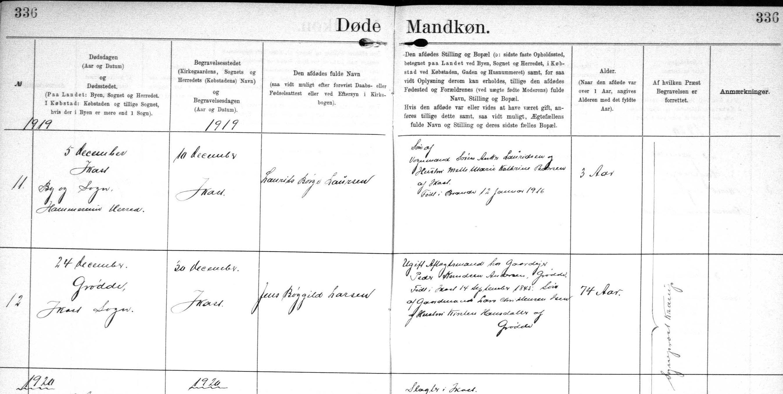 - [S383] The Danish National Archives; Church Records, Jens Bøgild Larsen death record - 24 Dec 1919 - Ikast, Hammerum, Ringkøbing, Denmark.