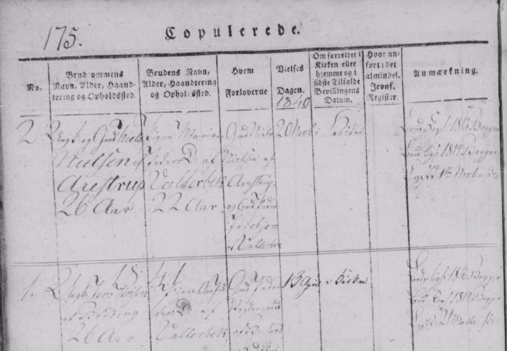 - [S383] The Danish National Archives; Church Records, Jens Pedersen and Bodil Nielsdatter marriage - 1840 - Frederiks, Lysgaard, Viborg, Denmark.