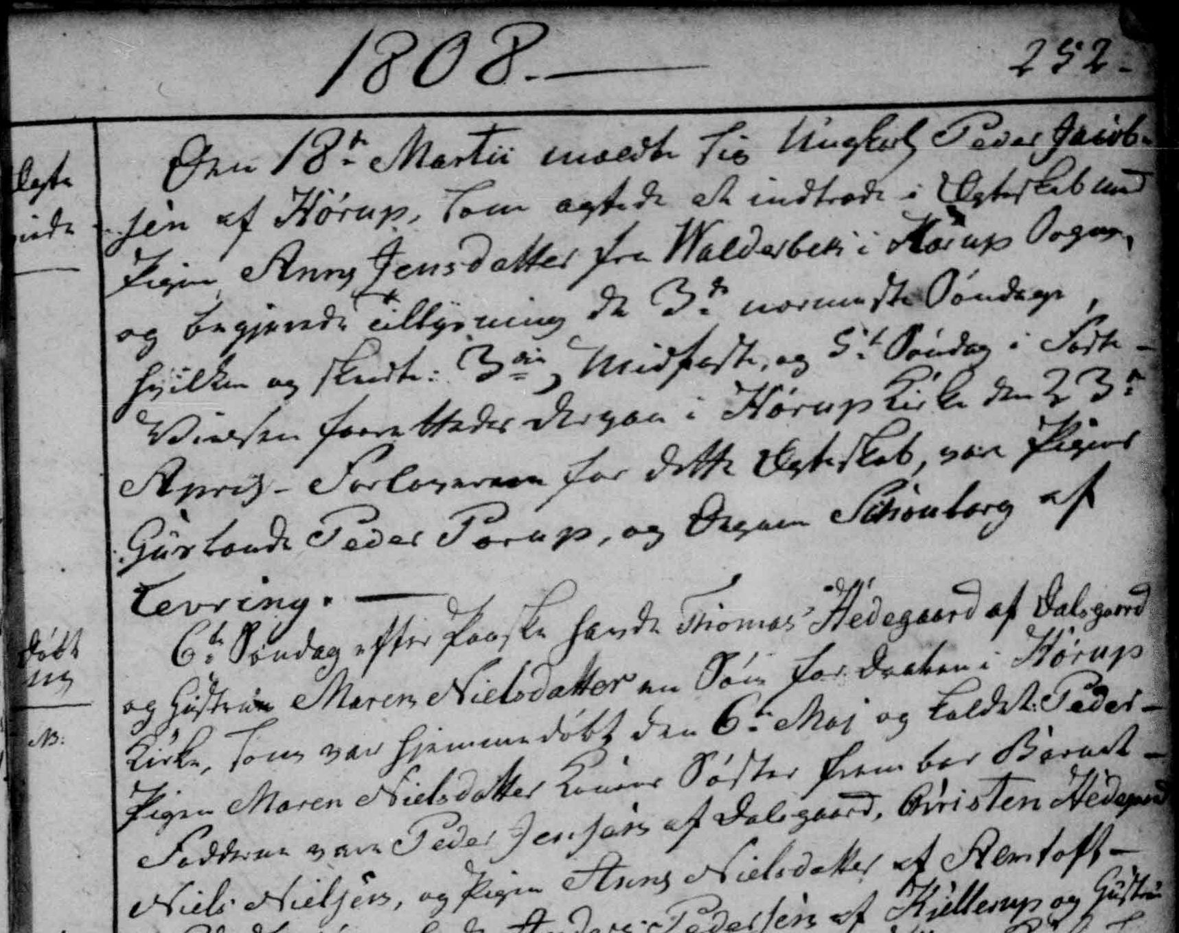 - [S383] The Danish National Archives; Church Records, Peder Jacobsen and Ane Jensdatter marriage record - 18 Mar 1808 - Hørup, Lysgaard, Viborg, Denmark.