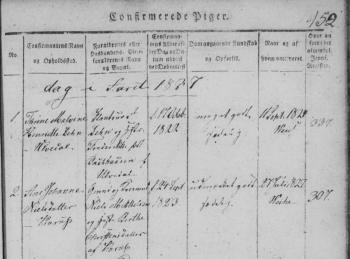 - [S383] The Danish National Archives; Church Records, Ane Johanne Nielsdatter confirmation, Page 152 Image 46, Karup sogn (Viborg amt) Kontraministerialbog (1814 - 2002) Denmark.