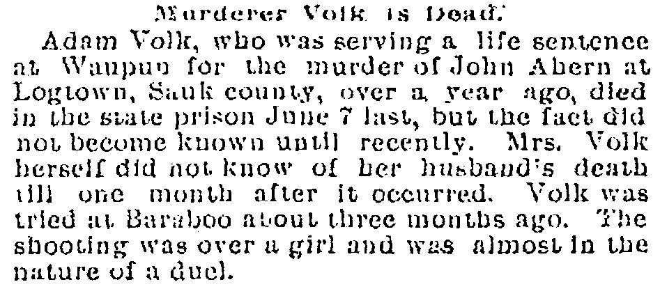 - Adam Volk+ b. 1852, d. 7 Jul 1891