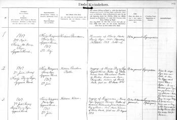 - [S383] The Danish National Archives; Church Records, Nielsine Christine Balle death record - 07 July 1907 - Karup, Lysgaard, Viborg, Denmark.