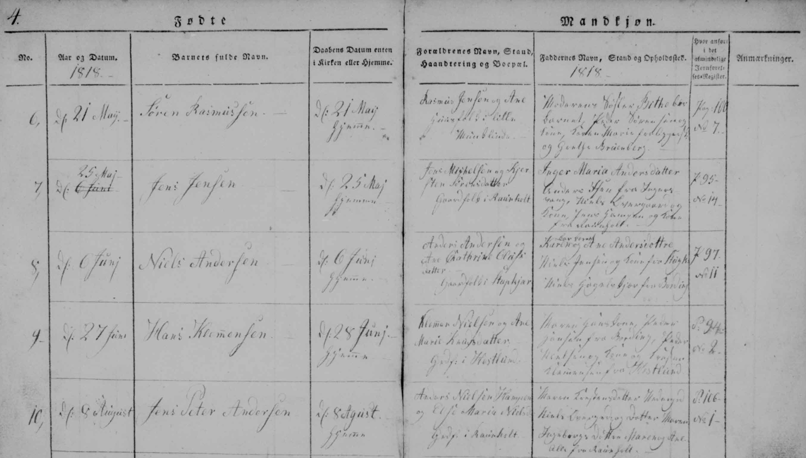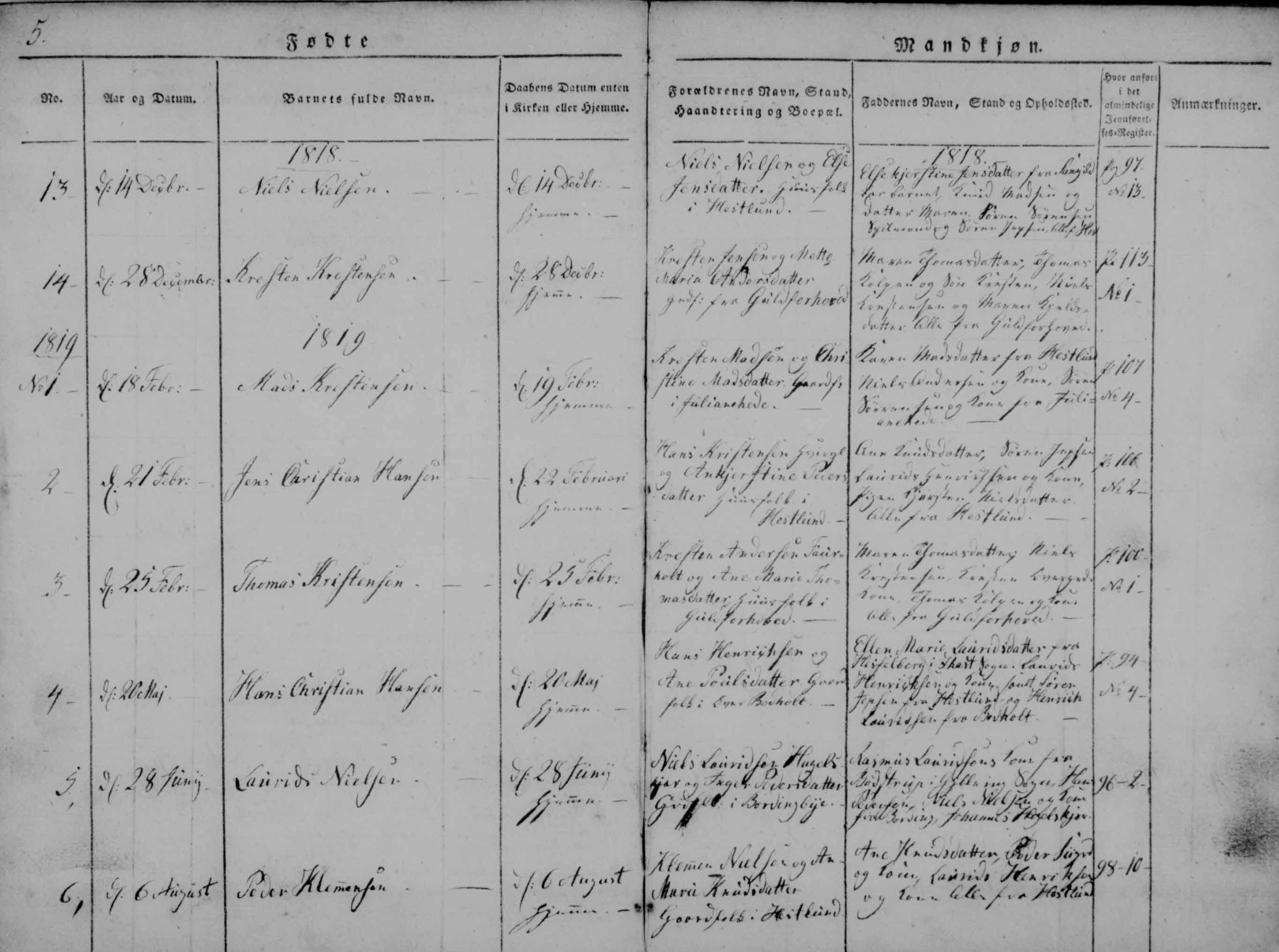 - [S383] The Danish National Archives; Church Records, Hans Klemensen birth record - 27 Jun 1818 - Bording, Hammerum, Ringkøbing, Denmark.