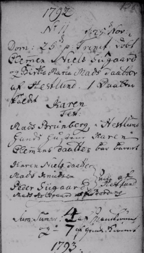 - [S383] The Danish National Archives; Church Records, Karen Clemensdatter birth record - 25 Nov 1792 - Bording, Hammerum, Ringkøbing, Denmark.
