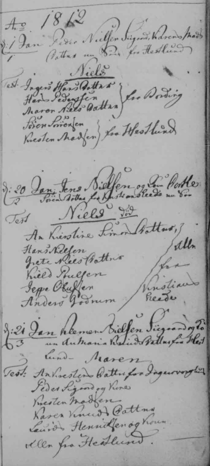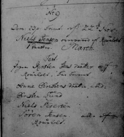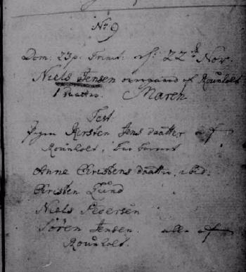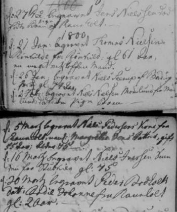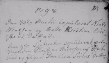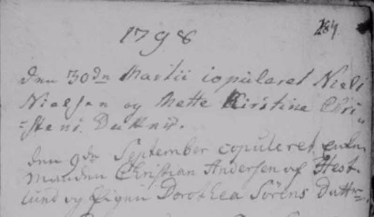 - [S383] The Danish National Archives; Church Records, Niels Nielsen and Mette Kierstine Christensdatter marriage record - 30 Mar 1798 - Bording, Hammerum, Ringkøbing, Denmark.