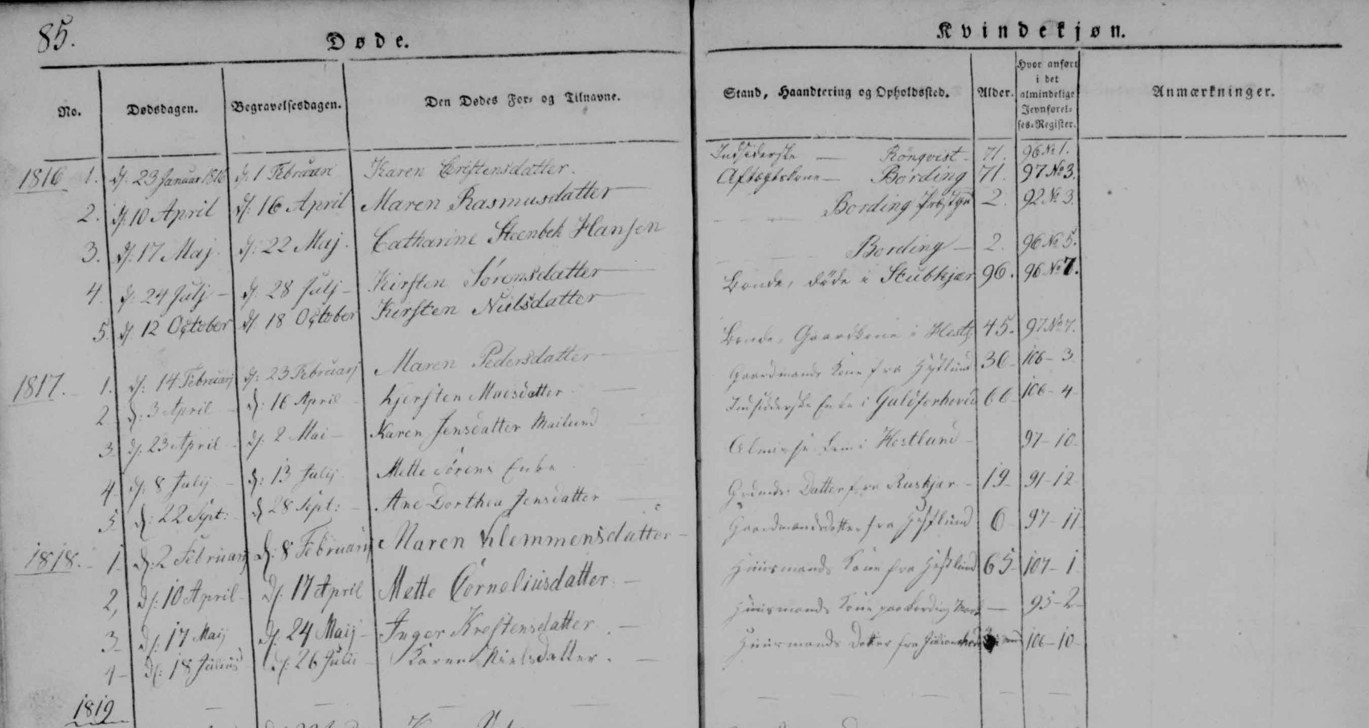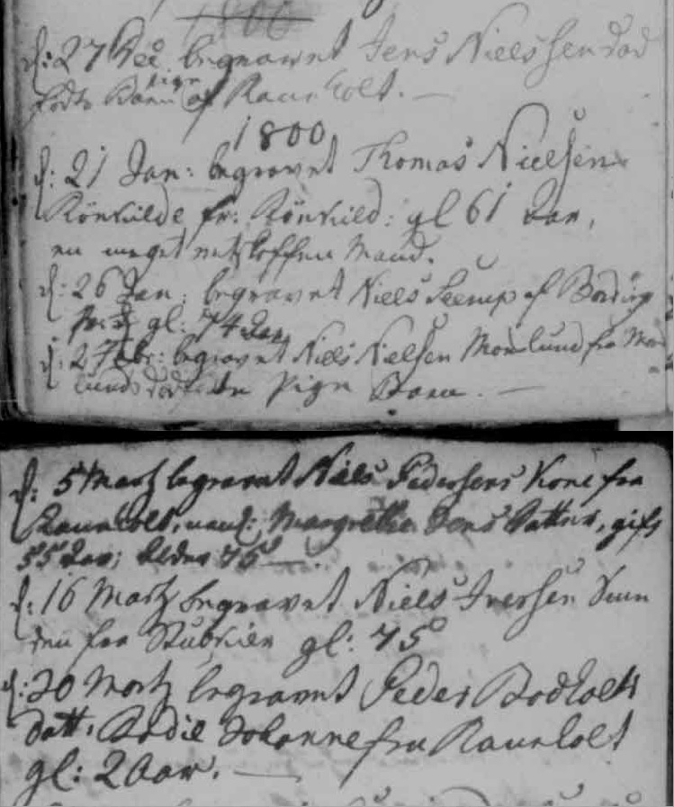 - [S383] The Danish National Archives; Church Records, Margaretha Jensdatter death record - 05 May 1800 - Bording, Hammerum, Ringkøbing, Denmark.