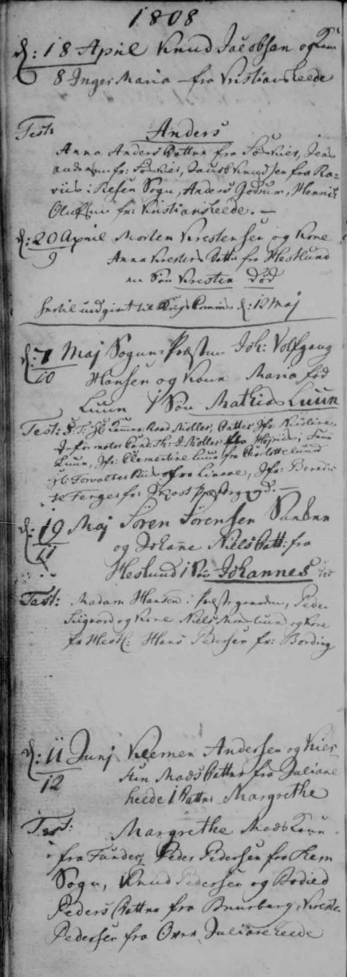 - [S383] The Danish National Archives; Church Records, Klemen Nielsen and An Maria Knudsdatter marriage record - 15 Apr 1804 - Bording, Hammerum, Ringkøbing, Denmark.