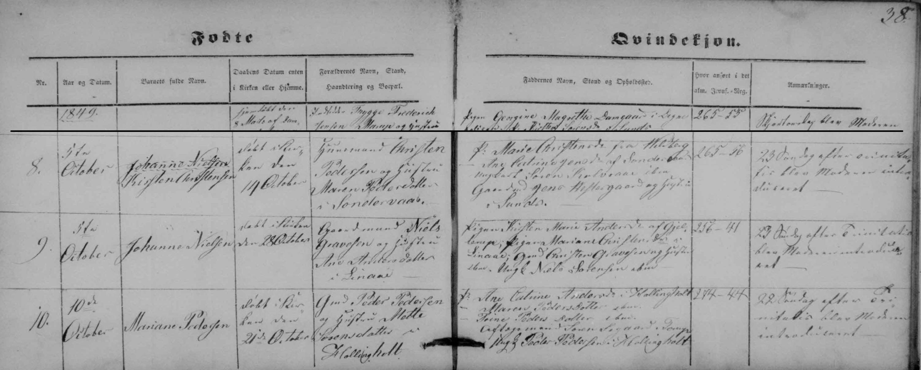 - [S383] The Danish National Archives; Church Records, Mariane Pedersen birth record - 10 Oct 1849 - Sunds, Hammerum, Ringkøbing, Denmark.