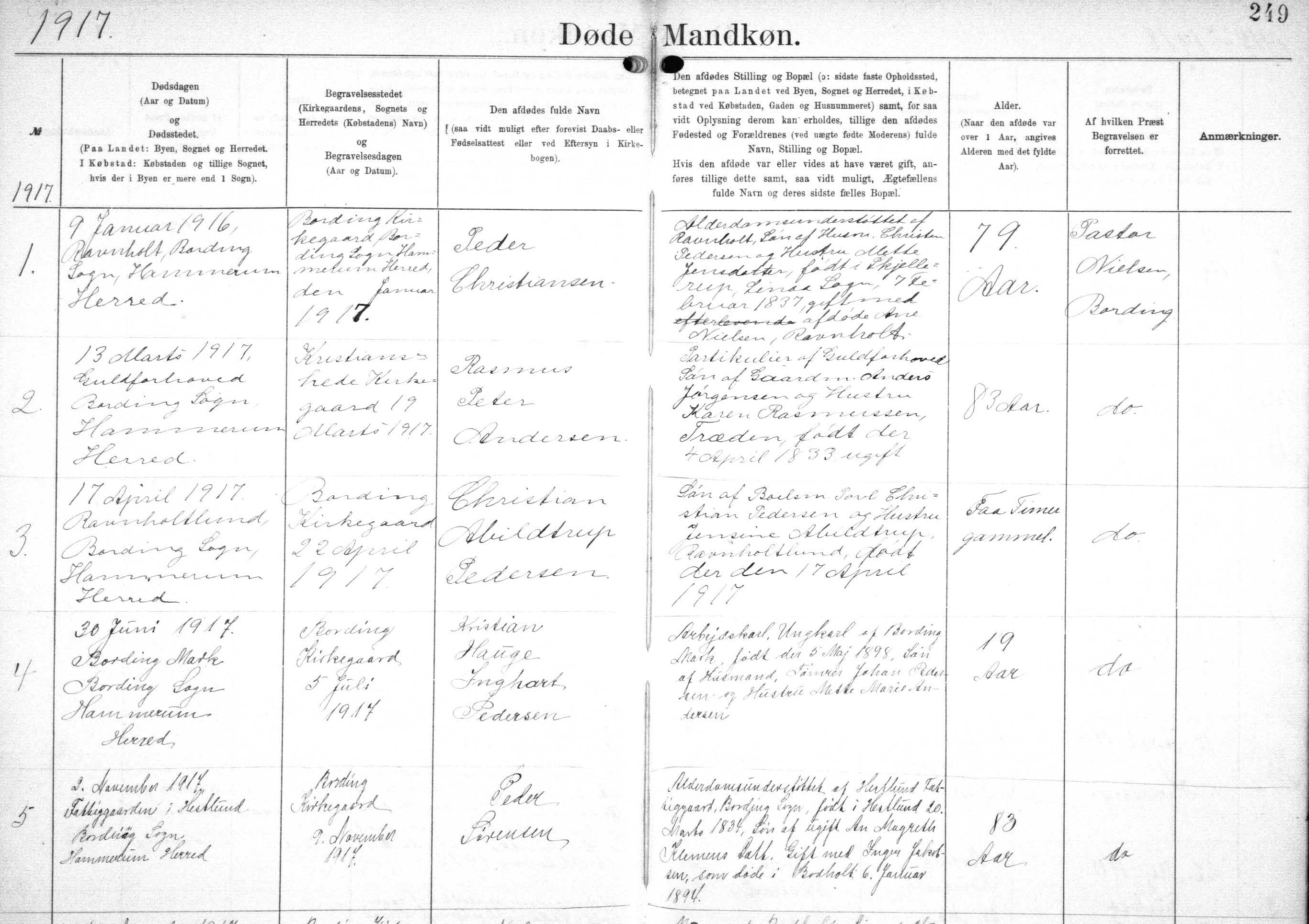 - [S383] The Danish National Archives; Church Records, Peder Sørensen death record - 02 Nov 1917 - Bording, Hammerum, Ringkøbing, Denmark.