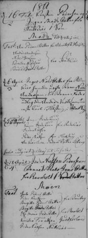 - [S383] The Danish National Archives; Church Records, Jens Nielsen and Benedicta Jensdatter marriage record - 04 Nov 1799 - Bording, Hammerum, Ringkøbing, Denmark.
