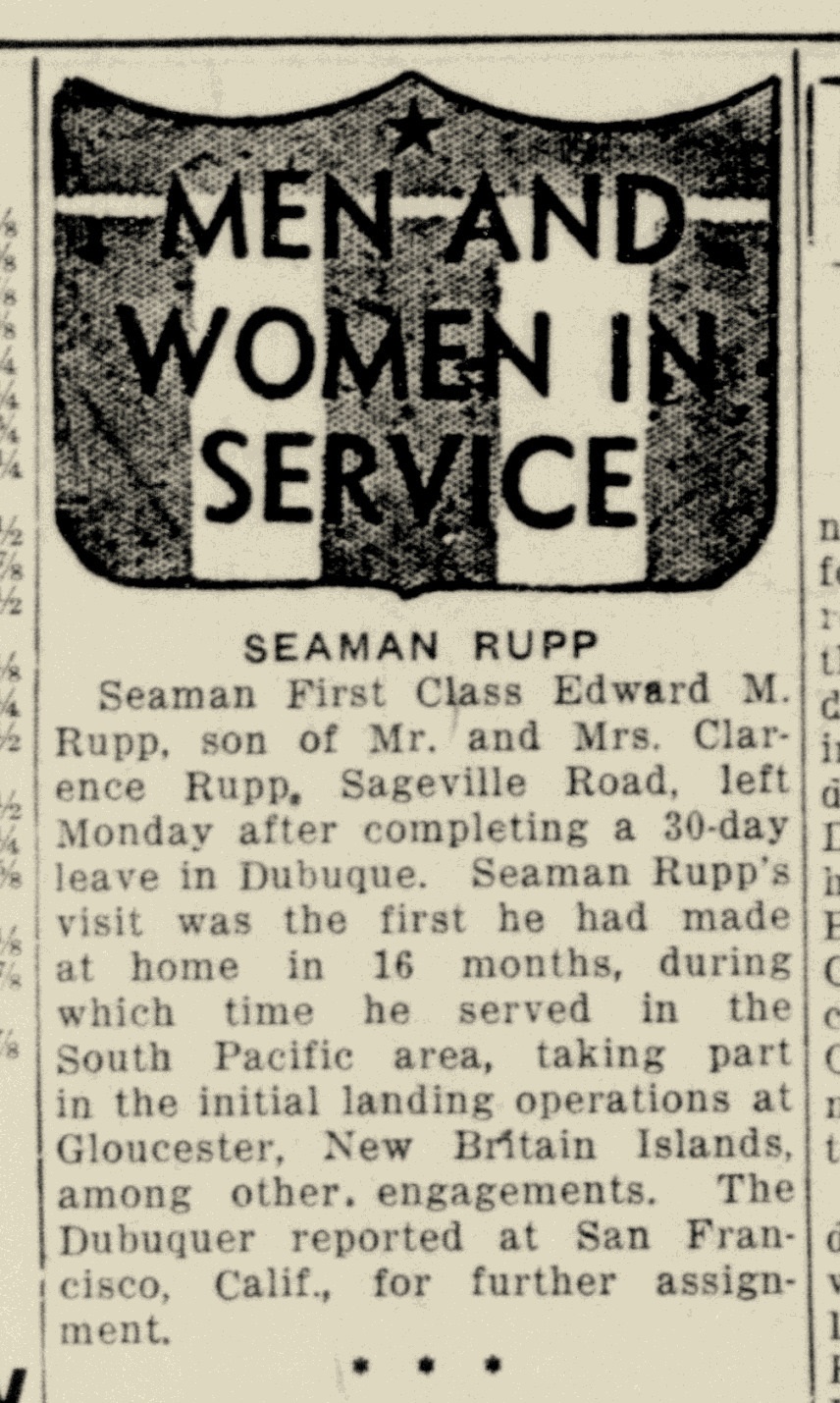 - [S373] U.S. Federal Census 1940 U.S. Federal Census, by Ancestry.com, Year: 1940; Census Place: Sageville, Dubuque, Iowa; Roll: m-t0627-01158; Page: 1A; Enumeration District: 31-13.