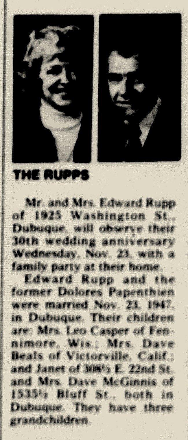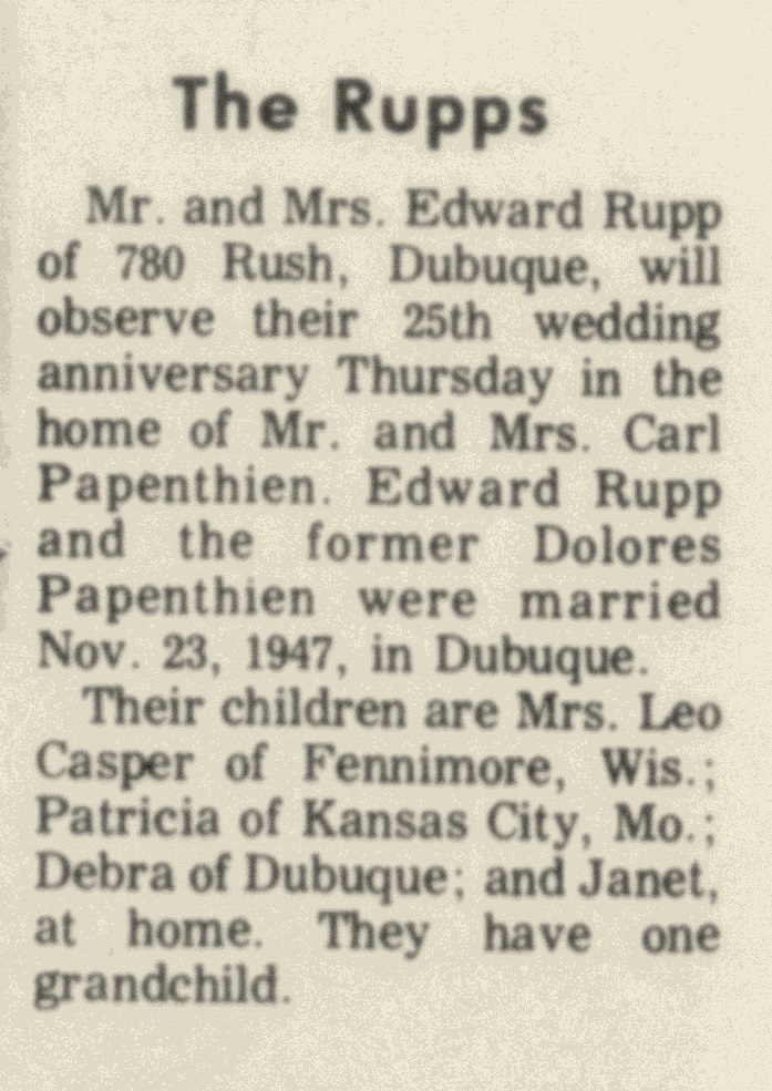 Child of Edward Michael Rupp and Dolores L. Papenthien