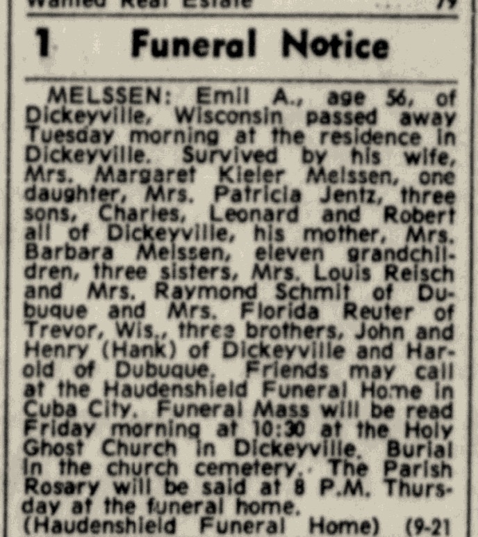 - Charles Leo Melssen b. 25 Mar 1939, d. 14 Jun 2007