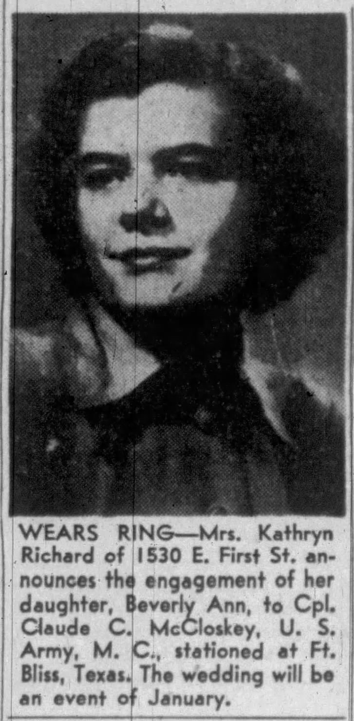 Child of Beverly Ann Richard and Claude Ralph McCloskey