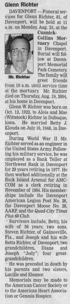 | Father* | Alois Mike Richter b. 7 Jun 1882, d. 29 Jun 1933 |