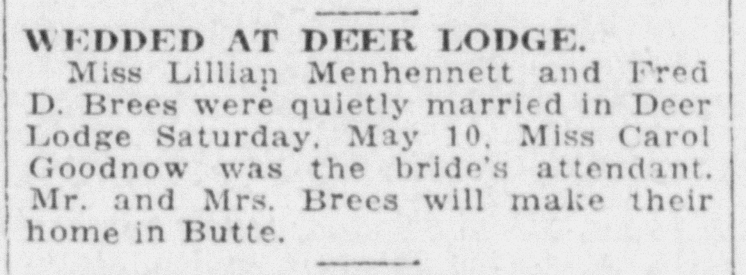 Child of Lillian A. Menhennett and Frederick Daniel Brees