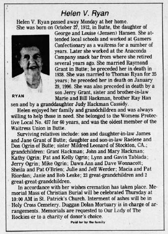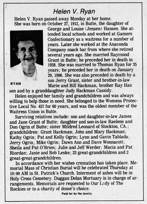 Children of Helen Virginia Hansen and Raymond Gerald Grant