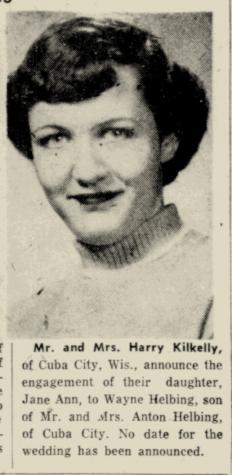 Dubuque Telegraph Herald March 22, 1953 - Jane Ann Kilkelly and Wayne Helbing engagement announcement