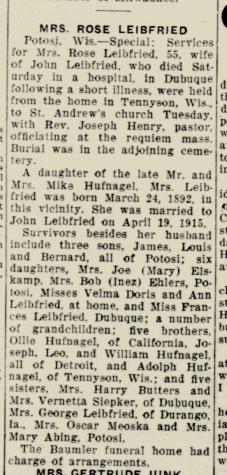 | Father* | John Bernard Leibfried b. 15 Jun 1891, d. Dec 1956 |