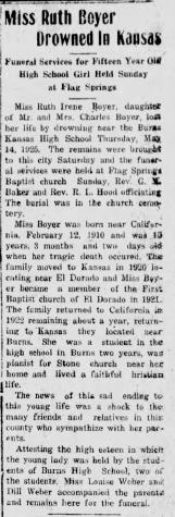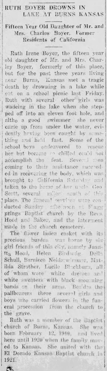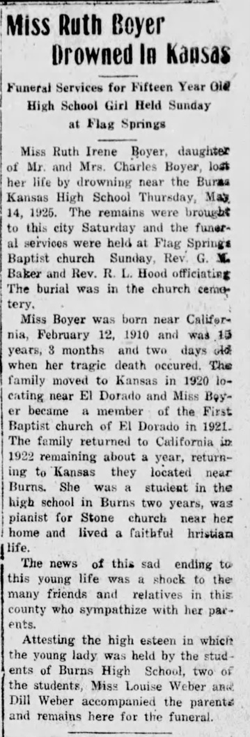 - Ruth Irene Boyer b. 12 Feb 1910, d. 14 Mar 1925