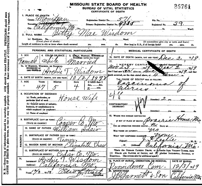 - Bettie Mae Adair+ b. 10 Oct 1872, d. 2 Sep 1919