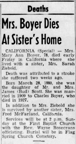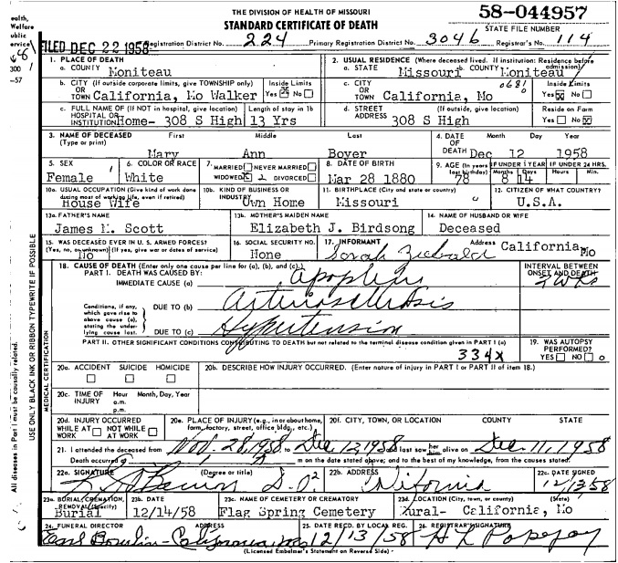 - Mary Elizabeth Boyer b. 19 Oct 1894, d. 25 Jul 1926