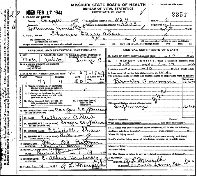 - Thomas Edgar Adair b. 27 Aug 1869, d. 17 Jan 1941