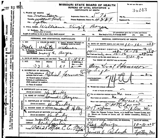 | Father* | William Virgil Boyer b. 25 Jul 1855, d. 16 Oct 1928 |