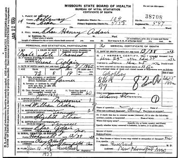 - [S250] U.S. Federal Census 1930 U.S. Federal Census, by Ancestry.com, Year: 1930; Census Place: Cedar, Callaway, Missouri; Roll: 1180; Page: 1B; Enumeration District: 0006; Image: 14.0; FHL microfilm: 2340915.