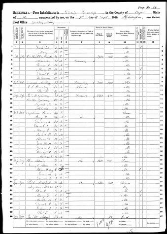 - [S248] U.S. Federal Census 1860 U.S. Federal Census, by Ancestry.com, Year: 1860; Census Place: Saline, Cooper, Missouri; Roll: M653_616; Page: 646; Family History Library Film: 803616.