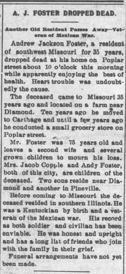 - James Foster b. 15 Aug 1865, d. 30 Jul 1949