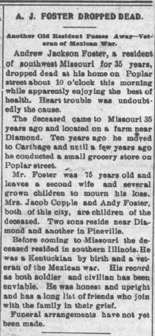 - Timothy L. Foster b. 30 Dec 1853, d. 11 Dec 1922