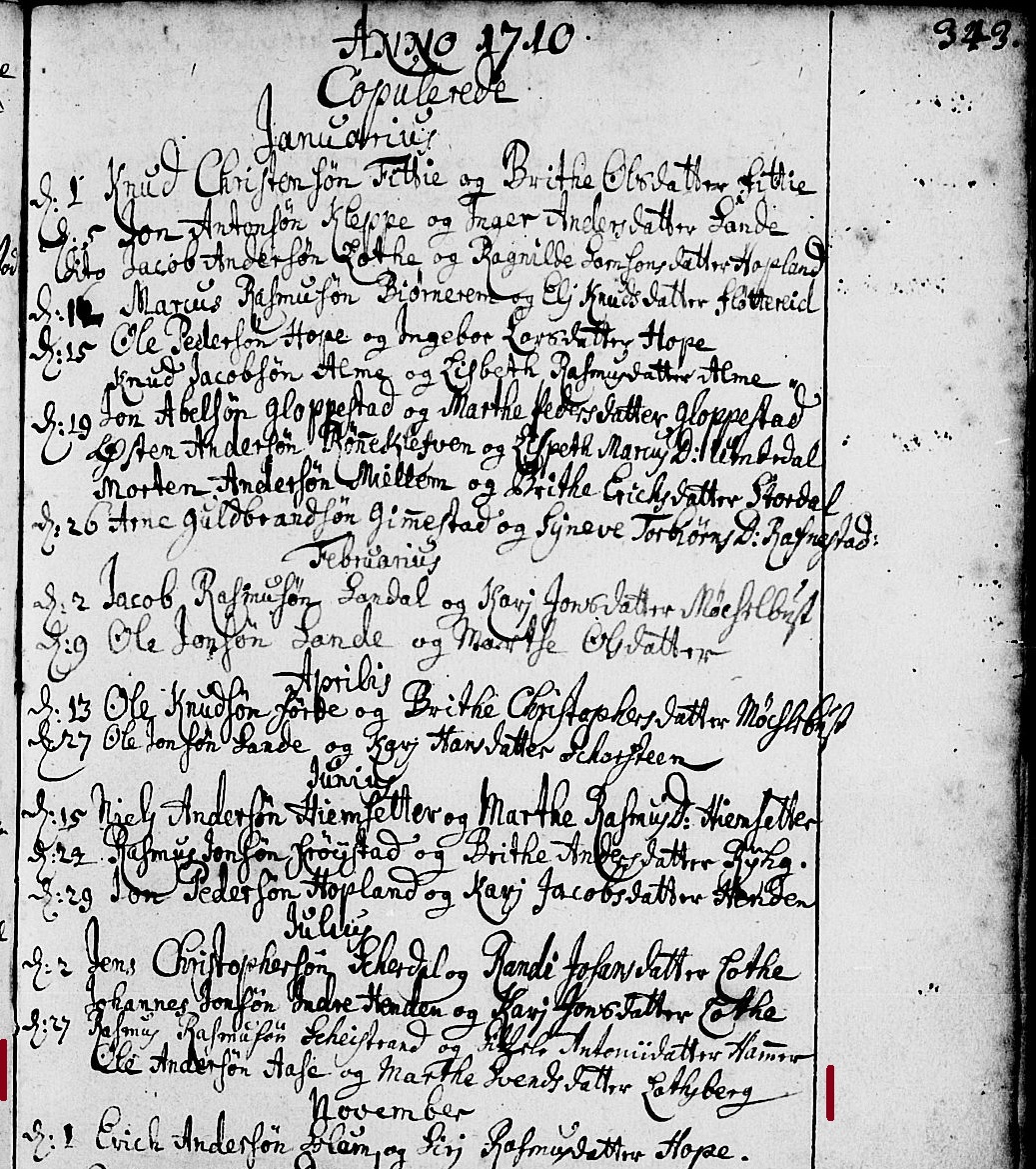 - [S375] Norwegian National Archives Digital Archives, by Norwegian government, SAB, Gloppen Sokneprestembete, Parish register (official) no. A 2, 1712-1735, p. 80-81.