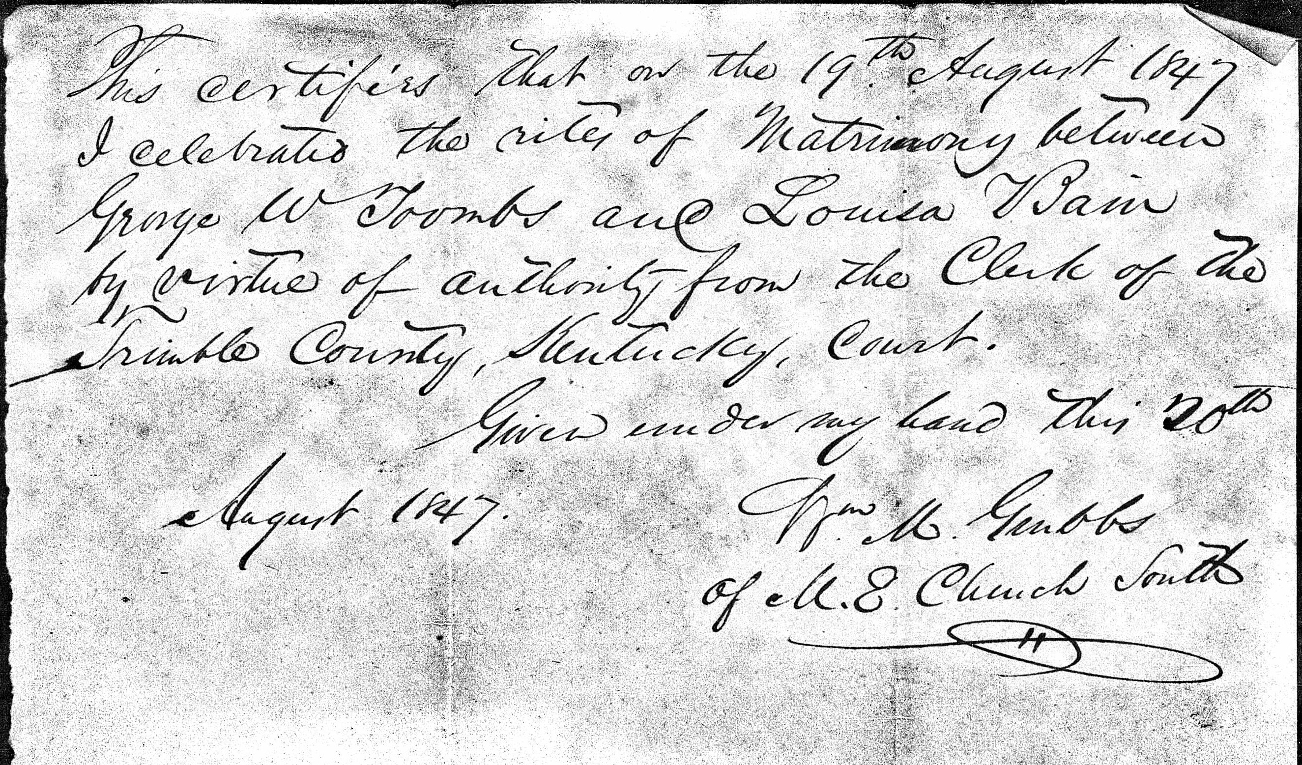 - George Washington Toombs b. 1815, d. 11 Dec 1853