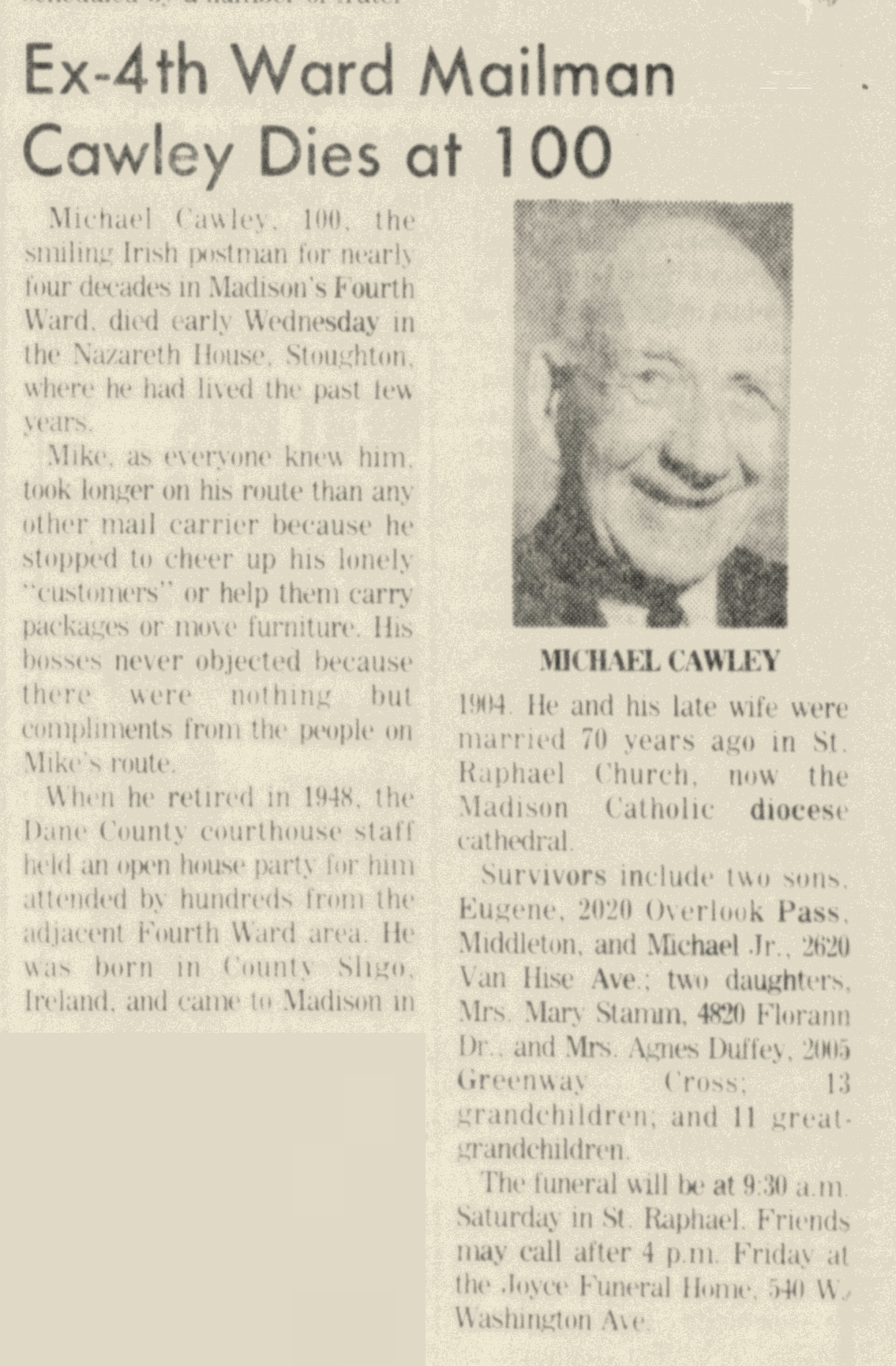 - Eugene John Cawley+ b. 30 May 1909, d. 13 Mar 1988