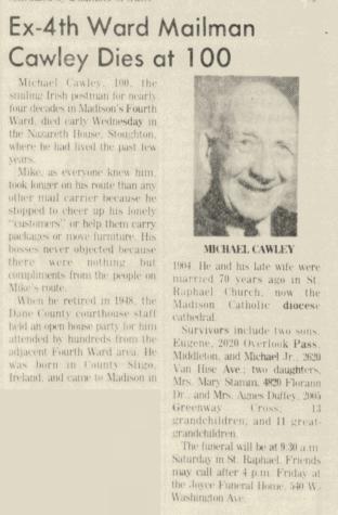 - Michael James Cawley Jr.+ b. 1 Jun 1913, d. 3 Oct 1986