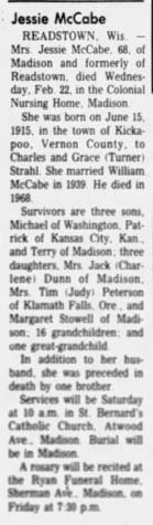 - Margaret Jean McCabe b. 16 Apr 1951, d. 3 Jun 2013