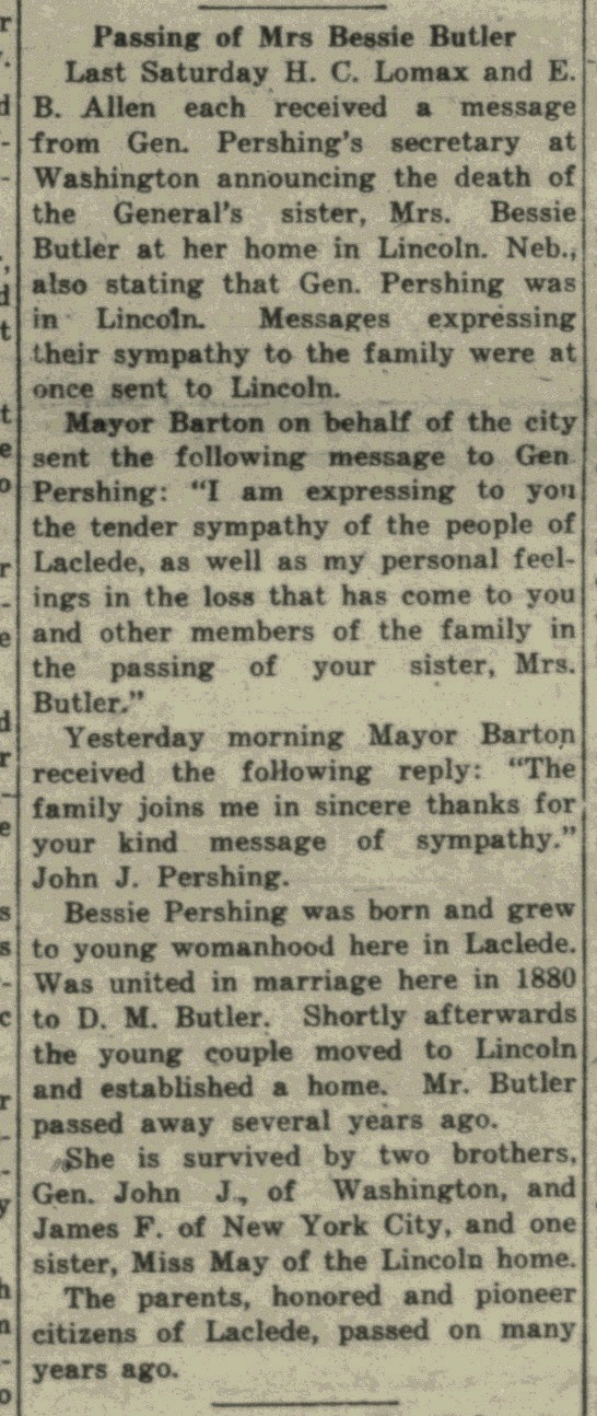 - Mary E. Pershing b. c 1865, d. Dec 1928