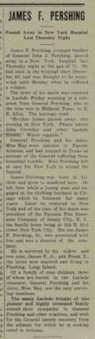 - Captain Ward Beecher Pershing b. 31 Mar 1874, d. 28 Aug 1909