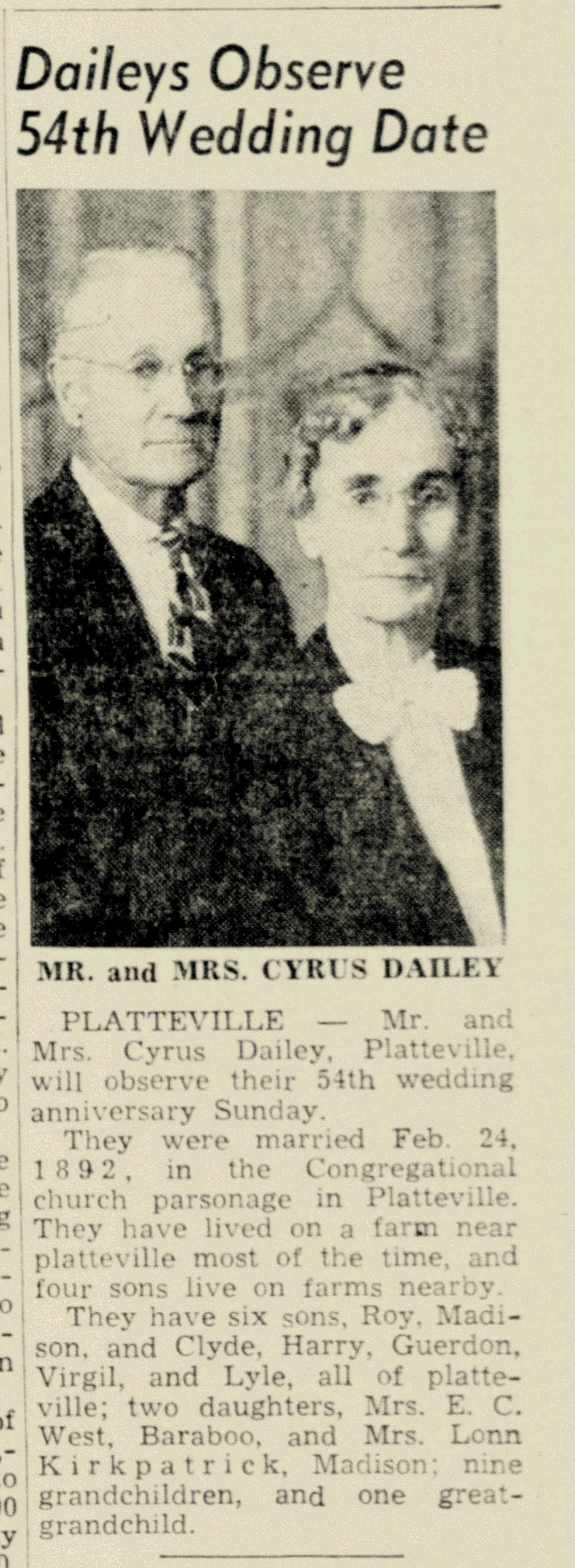 Child of Minnie Ruth Louthain and Cyrus E. Dailey