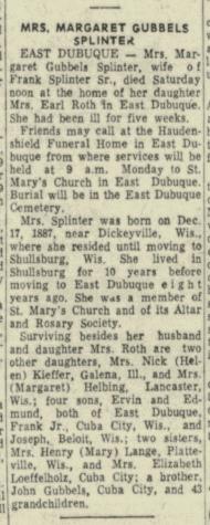 Children of Margaret Anna Gubbels and Frank Theodore Splinter Sr.